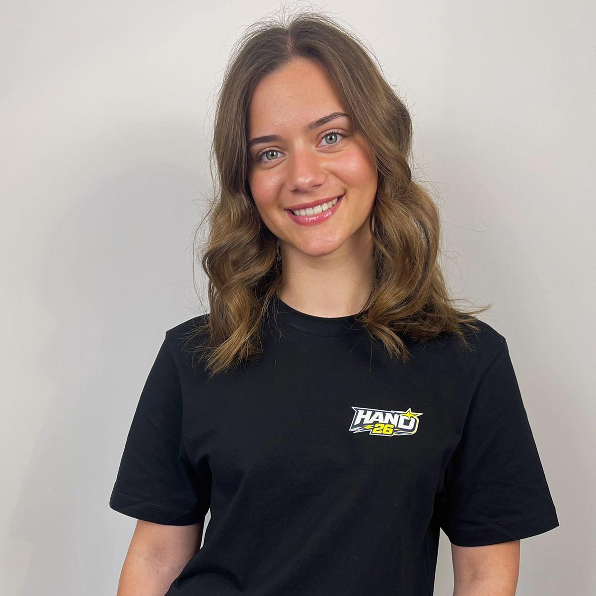 Keep it clean, classic, and race-ready with this black polo tee from the official Katie Hand Racing range.
